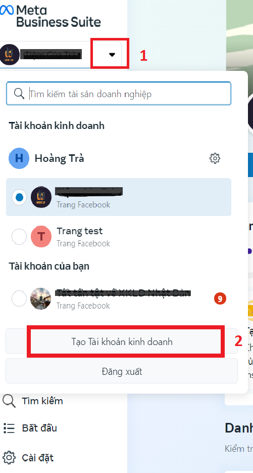hoặc nếu bạn đã có các fanpage, bạn truy cập business.facebook.com, sau đó làm theo như hình: