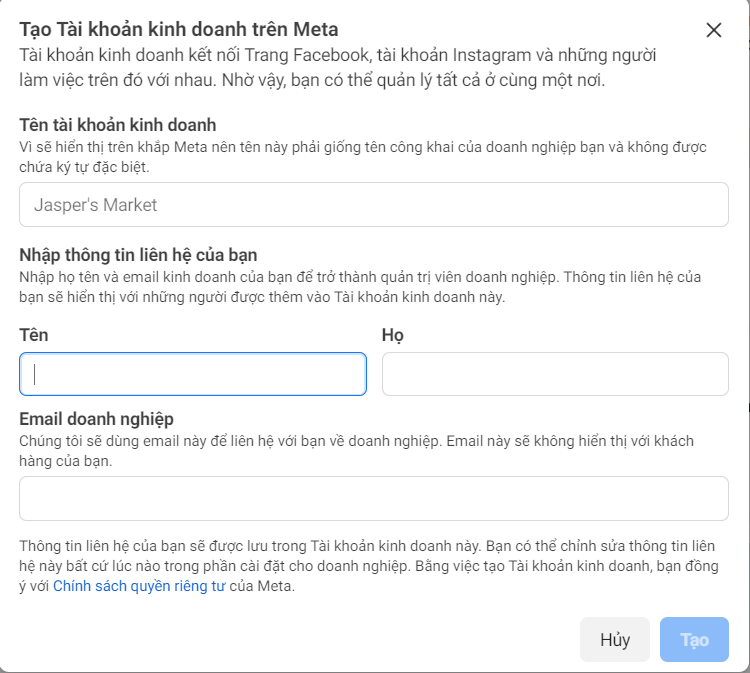 Cách tạo tài khoản quảng cáo Business BM trên Facebook
