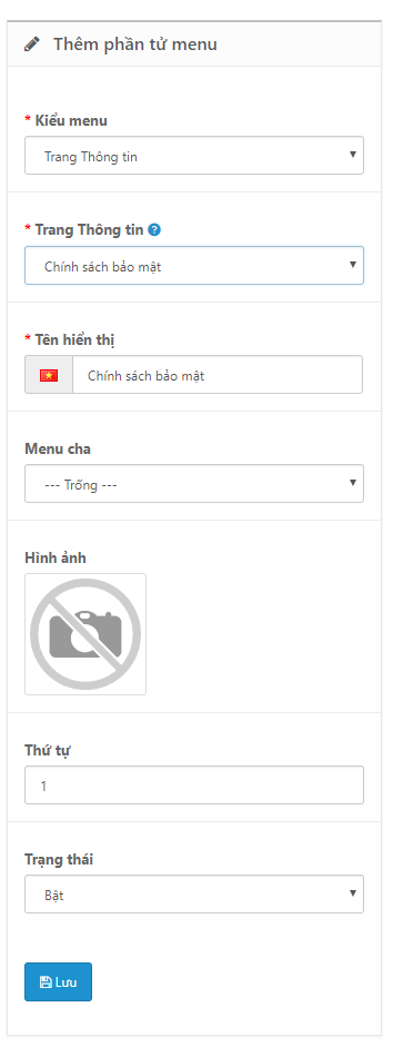 Bước 5: Click vào nút Lưu để hoàn thành thêm menu mới